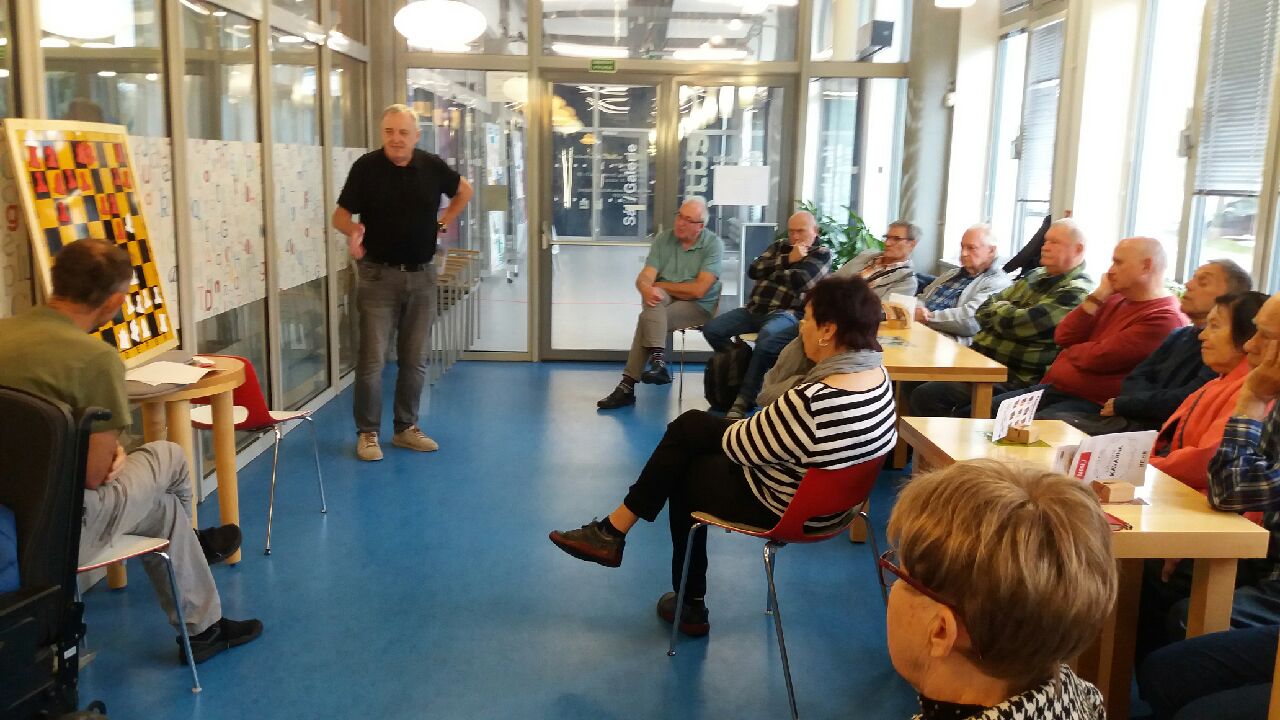 Milí přátelé, páteční schůzka č. 12 se povedla. Mnoho členů přišlo, aby vyslechlo přednášku našeho mentora Zdeňka Pokorného o propočtu v šachové partii. Byla velmi zajímavá, o čemž svědčí její hodinové trvání a potlesk na konci. V mailu jsme dostali cvičné příklady k řešení. Těšíme se na další přednášku! Připojuji pár fotek. JB